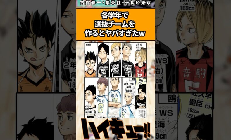 あー、どの学年も強者揃いだし、、ぶっちゃけ学年関係なく強いよ? でも妄想とかで、ハイキューに登場する全学校全登場キャラでチーム編成すんのガチ楽しい