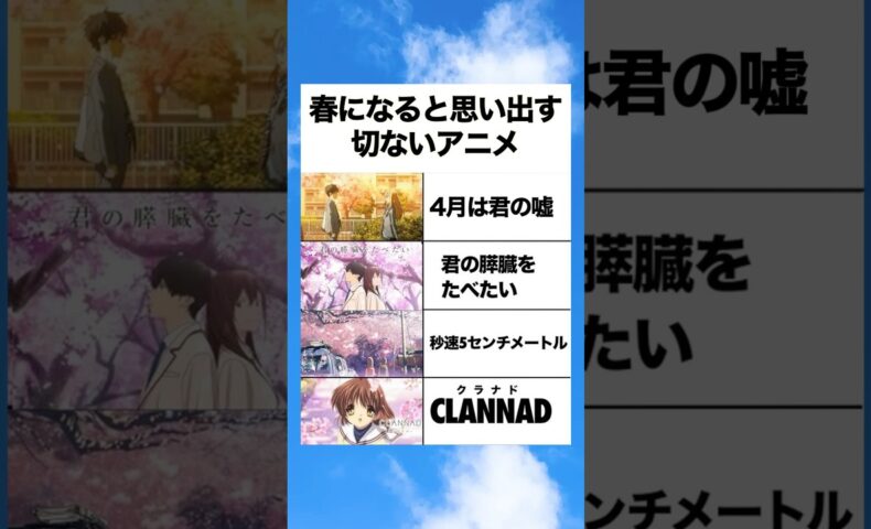 春になると思い出す切ないアニメ 4月は君の嘘 君の膵臓をたべたい 秒速5センチメール クラナド