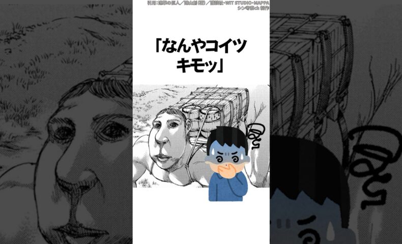 いや、アニメでリヴァイのとこに出て来た時の車力巨人の姿も、後で知った中身のピークも車力時の声も十分キモいって。雷槍で更新されキモくない新たなキャラで臭そうじゃない車力出してほしかった。